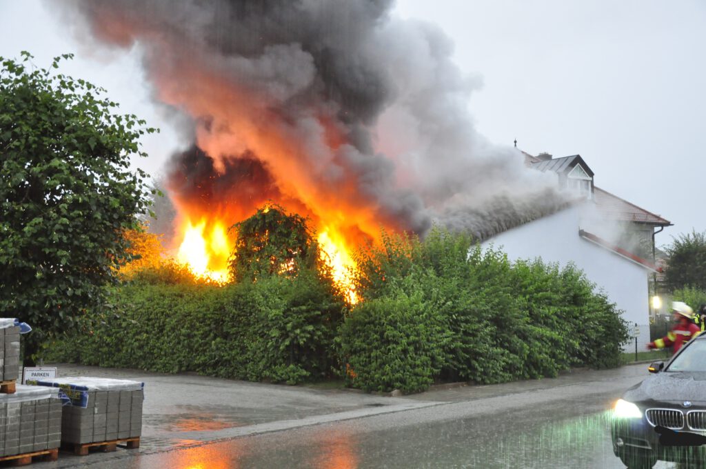 Da auf Grund von Unwetter alle Feuerwehren im Umkreis bereits besetzt waren, konnten diese in sehr kurzer Zeit ausrücken und vor Ort ein Ausbreiten des Brandes verhindern.